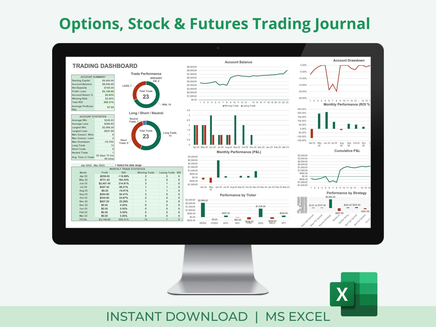 Options, Stocks & Futures Trading Journal | Multi-Account Trading Spreadsheet (Up to 10 Accounts)