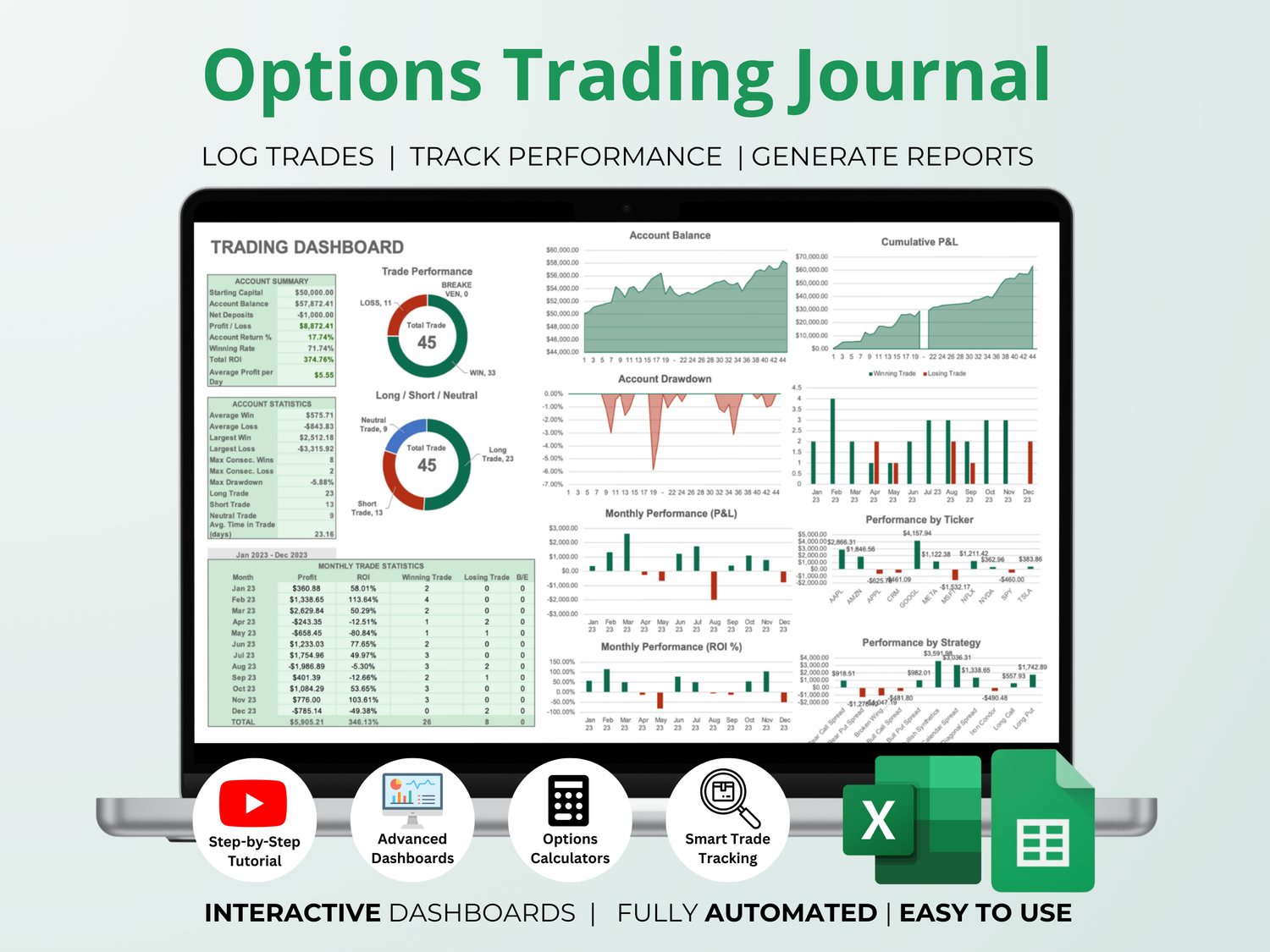 Options, Stocks & Futures Trading Journal | Multi-Account Trading Spreadsheet (Up to 10 Accounts)