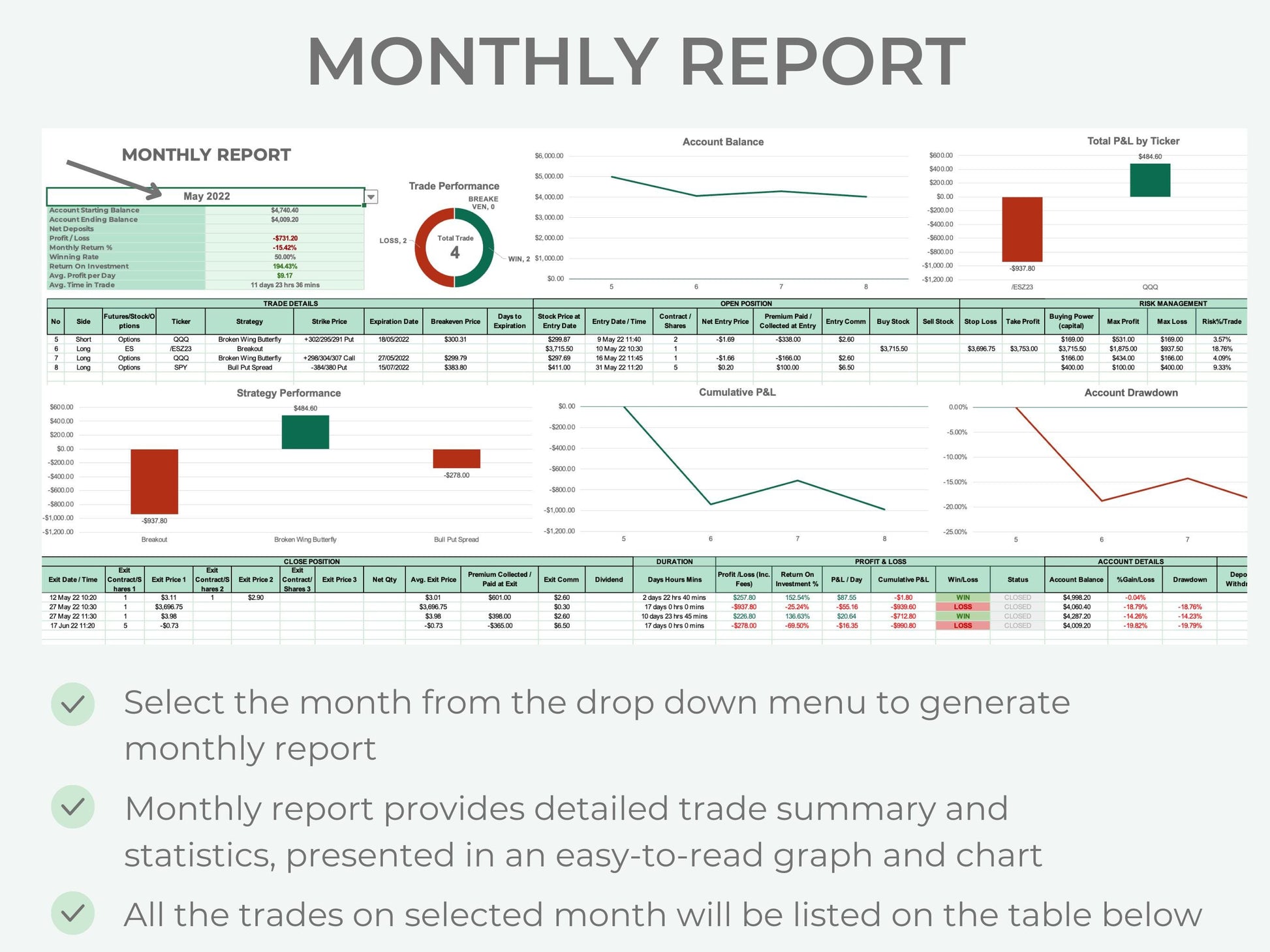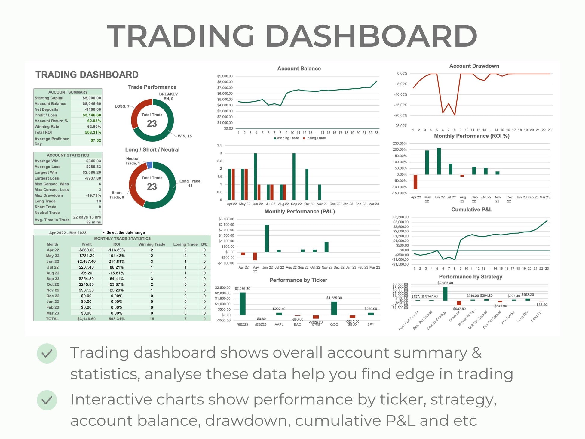 • 📊 Advanced Charting & Analytics – Visualize your performance by month, strategy, and ticker; includes equity curve, win rate, and trade direction breakdown