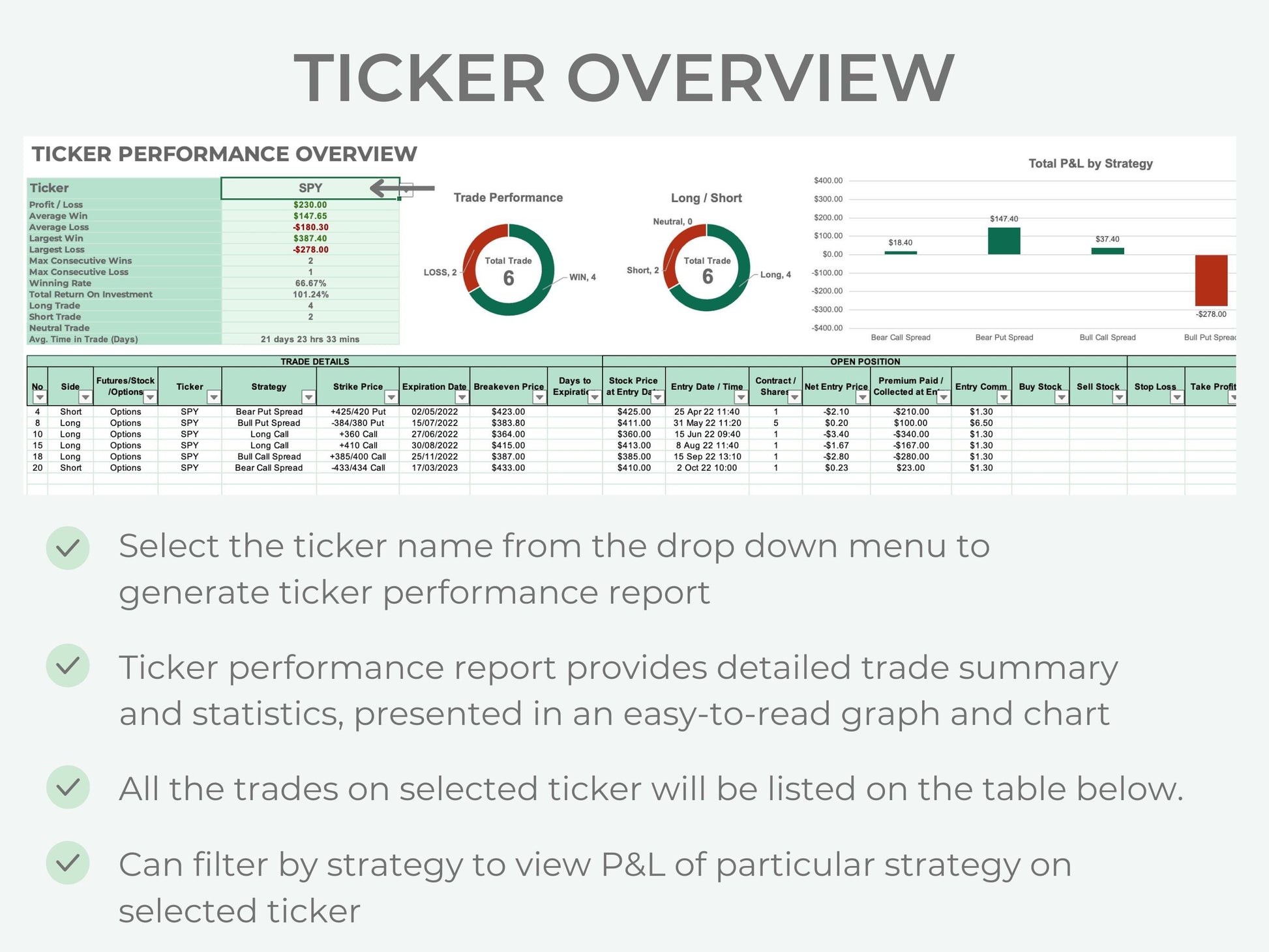 • 📈 Ticker Performance Overview – Evaluate performance metrics for each individual ticker