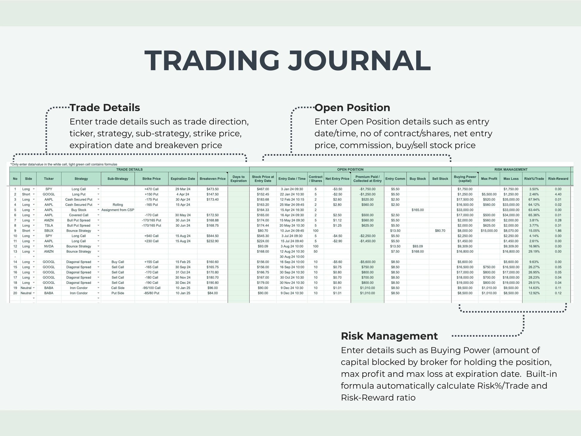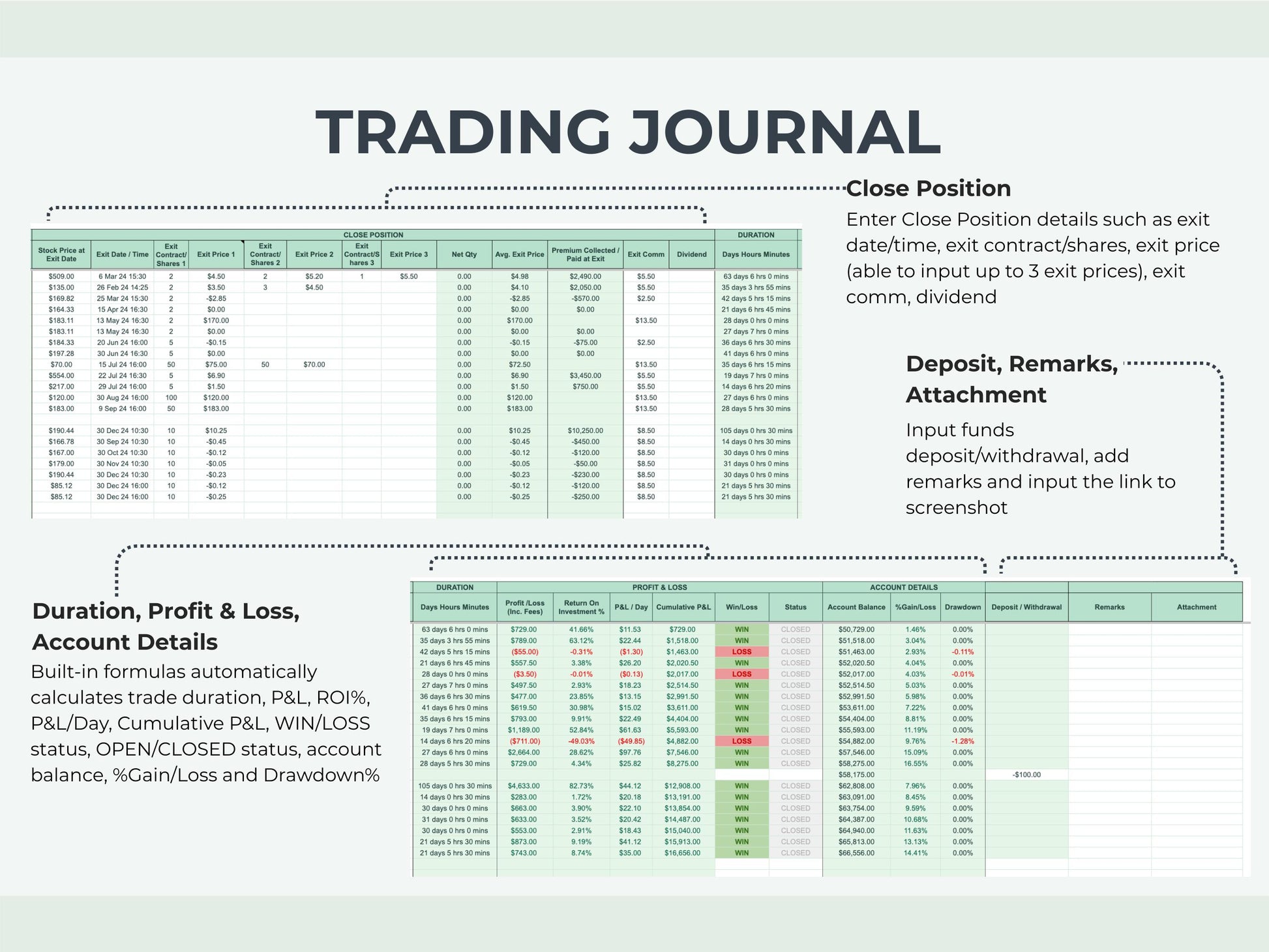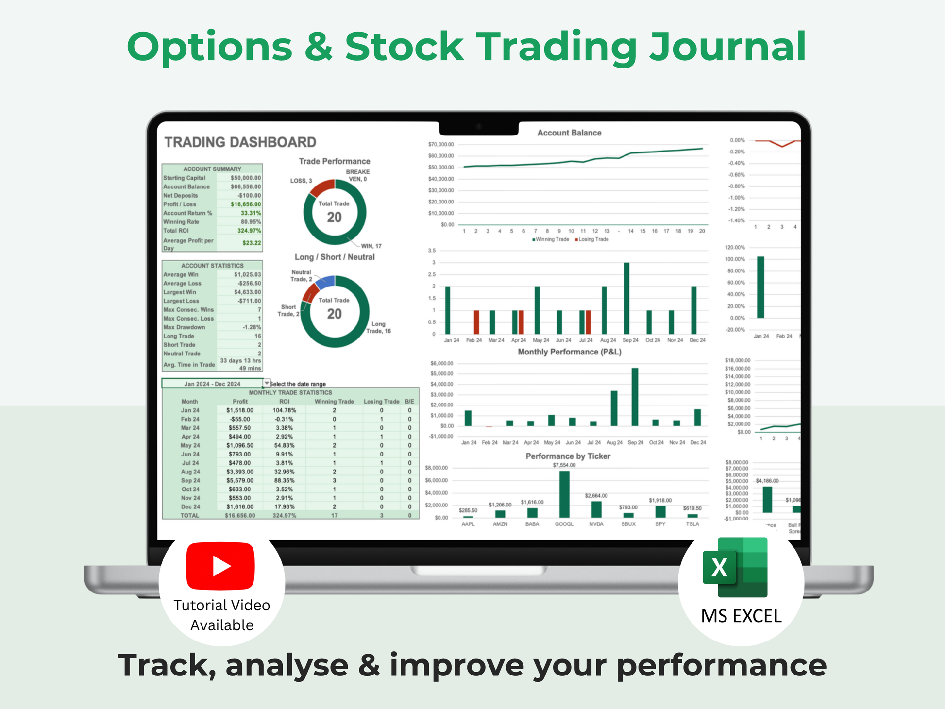 Take control of your trading performance with this powerful and easy-to-use Trading Journal designed specifically for traders who trade options and stocks within the same account. Whether you're a beginner or experienced trader, this journal helps you track, analyze, and improve your trades with data-driven insights.