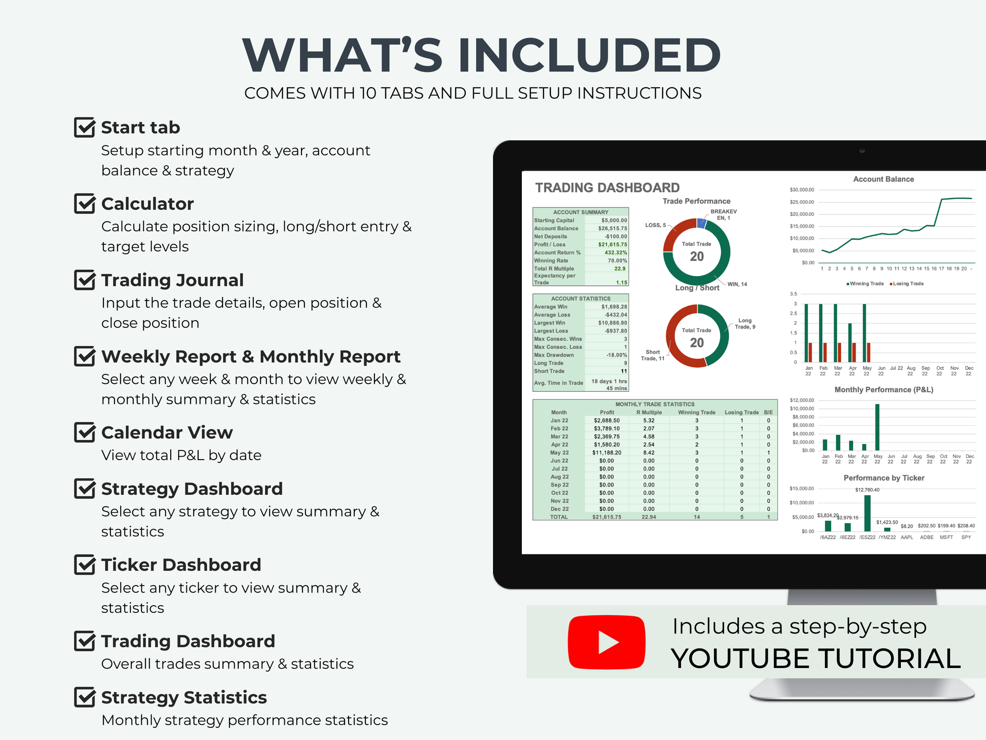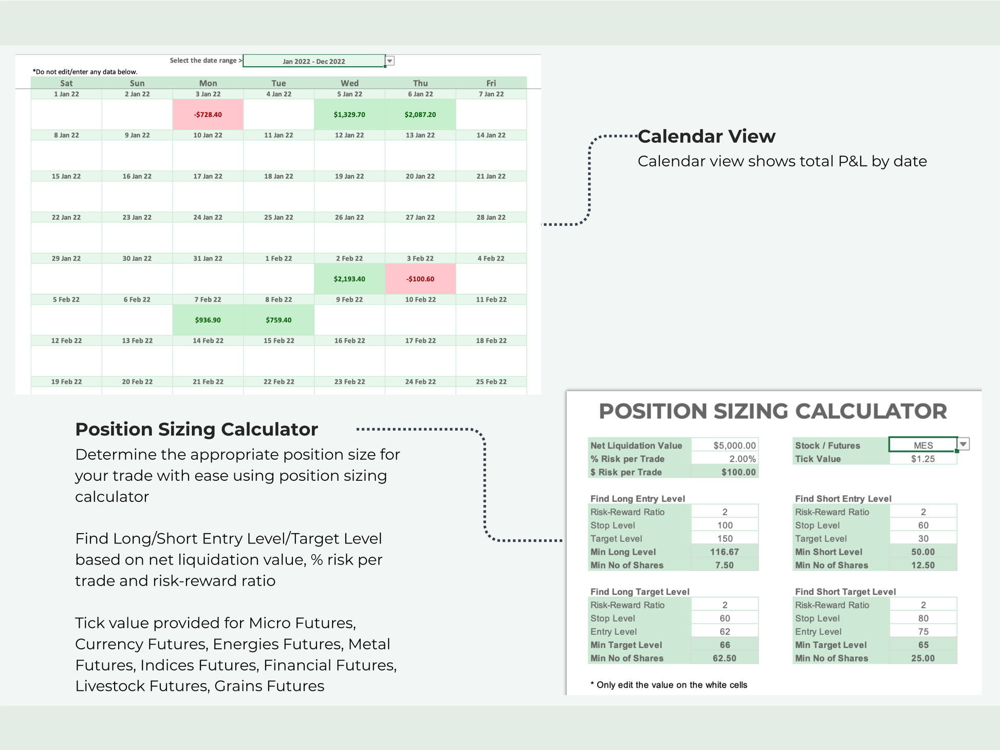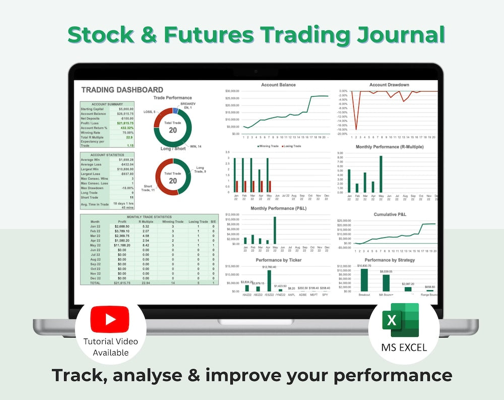Elevate your trading with this all-in-one Trading Journal, crafted specifically for Stock and Futures traders. Whether you're just starting out or a seasoned pro, this powerful tool will help you track, analyze, and refine your trades with precision.