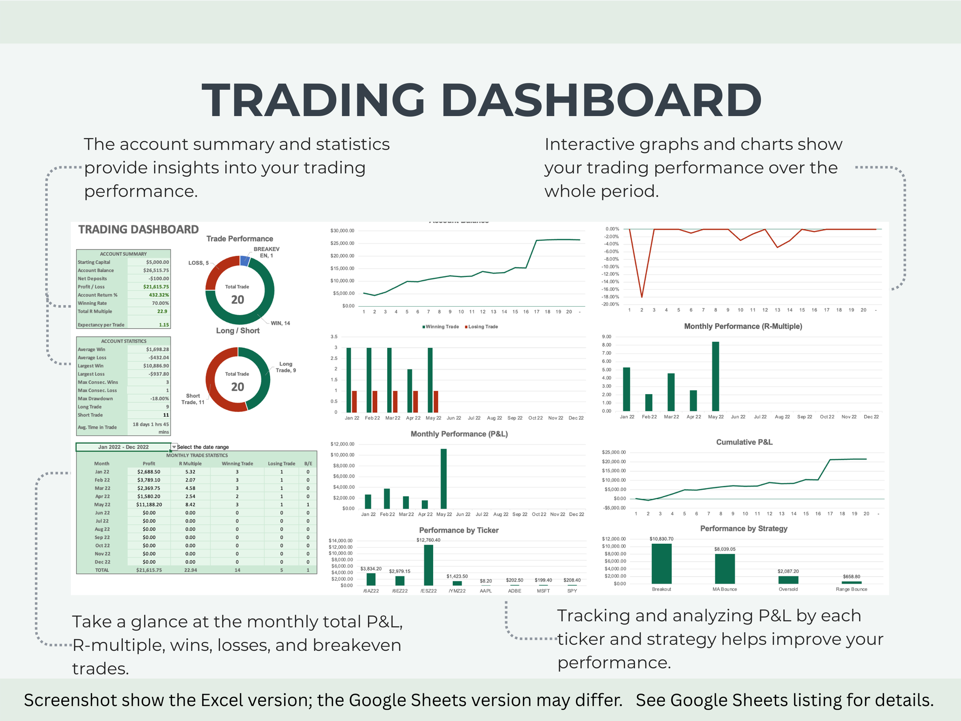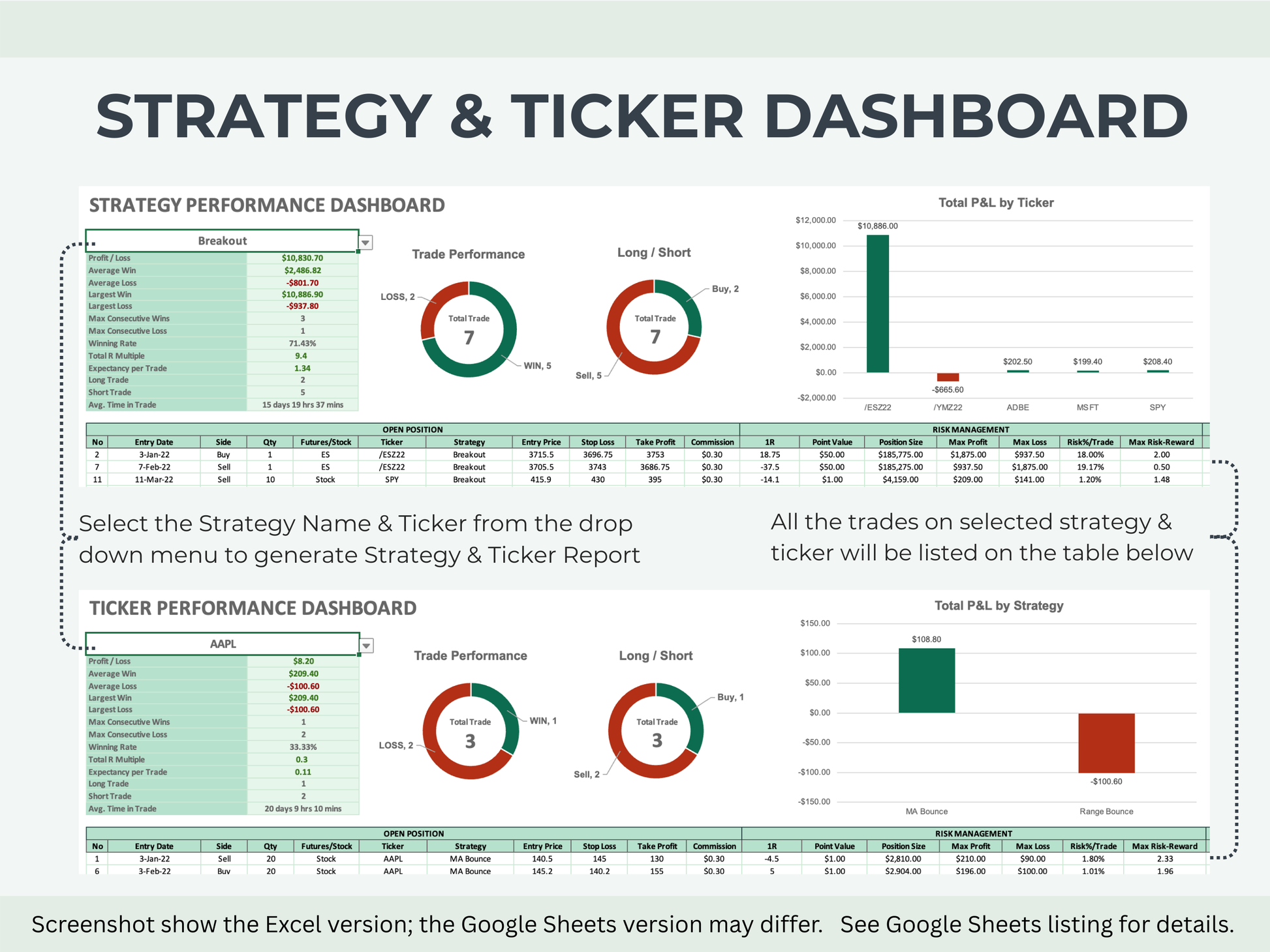 β’ π Visual Dashboards & Charts β Analyze performance by ticker, strategy, and trade direction (long/short)